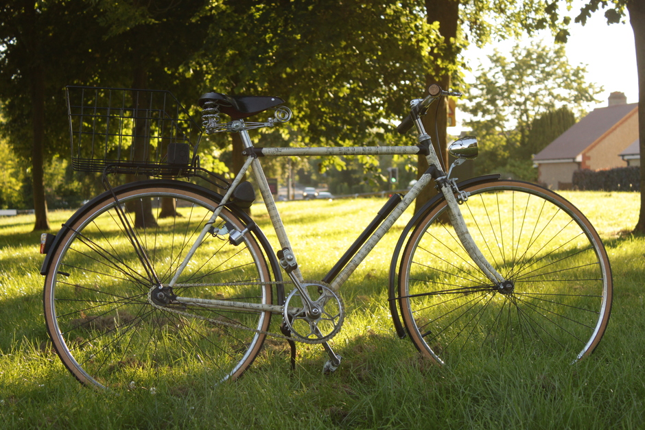 This is my granddad's bike I restored after he passed away. It's a musical bike with a USB dynamo charger for Bluetooth Speakers. The frame is restored and hand-decorated with old classical music notes.