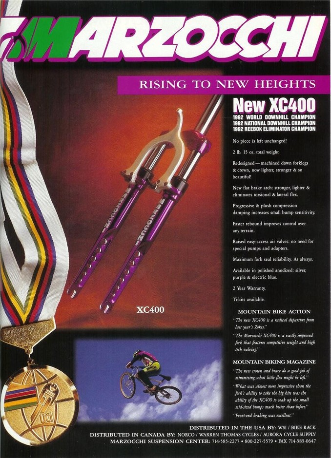 1. ) Marzocchi XC400 purple anodized, air- / oil-suspension.