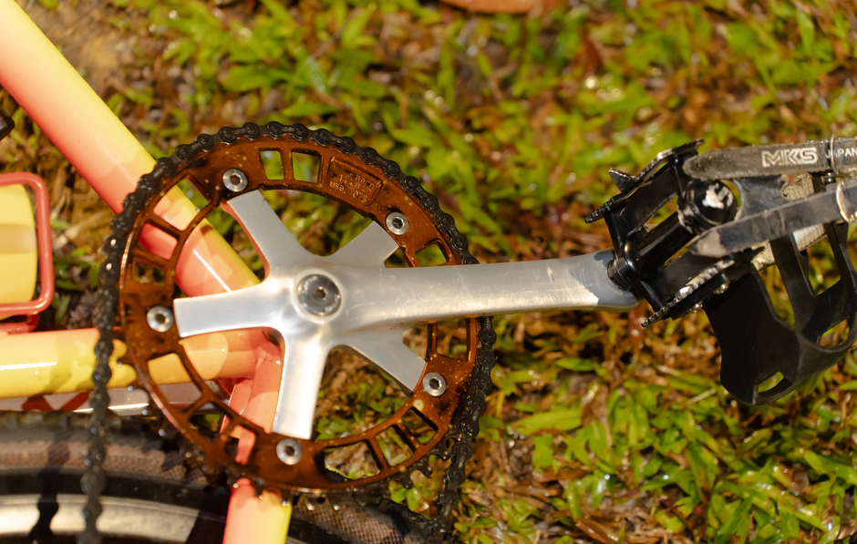no name cog 17t , dura ace njs lockring, izumi x mash track chain, aarn x retrogression born of fire 47t.