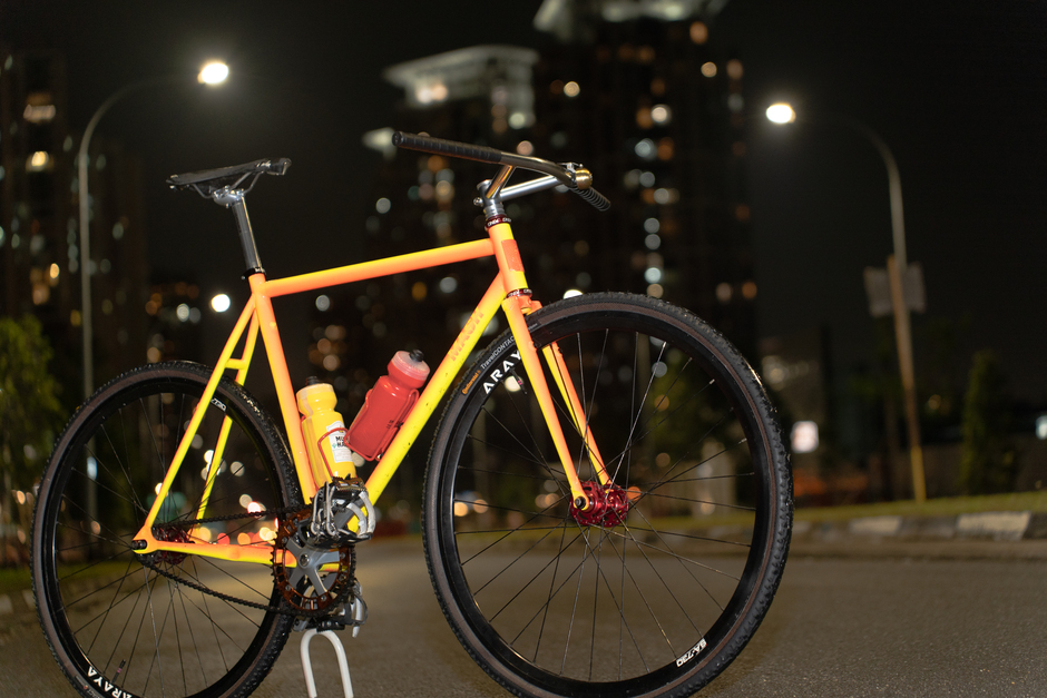 My new commuter/tracklocross bike, gets me to school and wherever i want. Frame purchased brand new and imported from san jose to here in singapore.