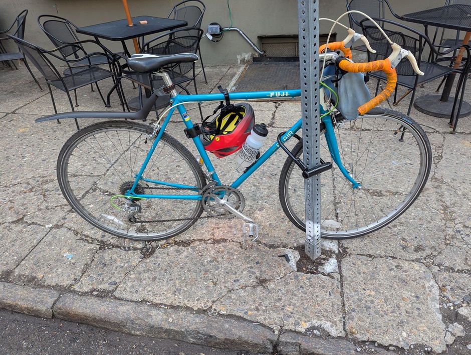 Resurrected from a corner of the Collingswood bikeshare garage! Never quite fit me right, but was a sturdy and gorgeous piece of machinery.