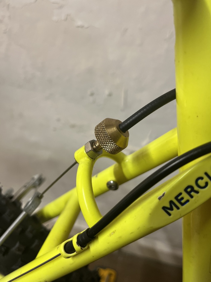 Custom cable adjuster that I machined for the M6 rear brake braze on