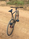Custom build LoPro frame made out of Hi-Ten steel size 52 effective, custom made straight legs fork with 20mm offset made out of super thermal cromoly 4130 able to fit 45mm tires with room for bigger ones, the rest is history