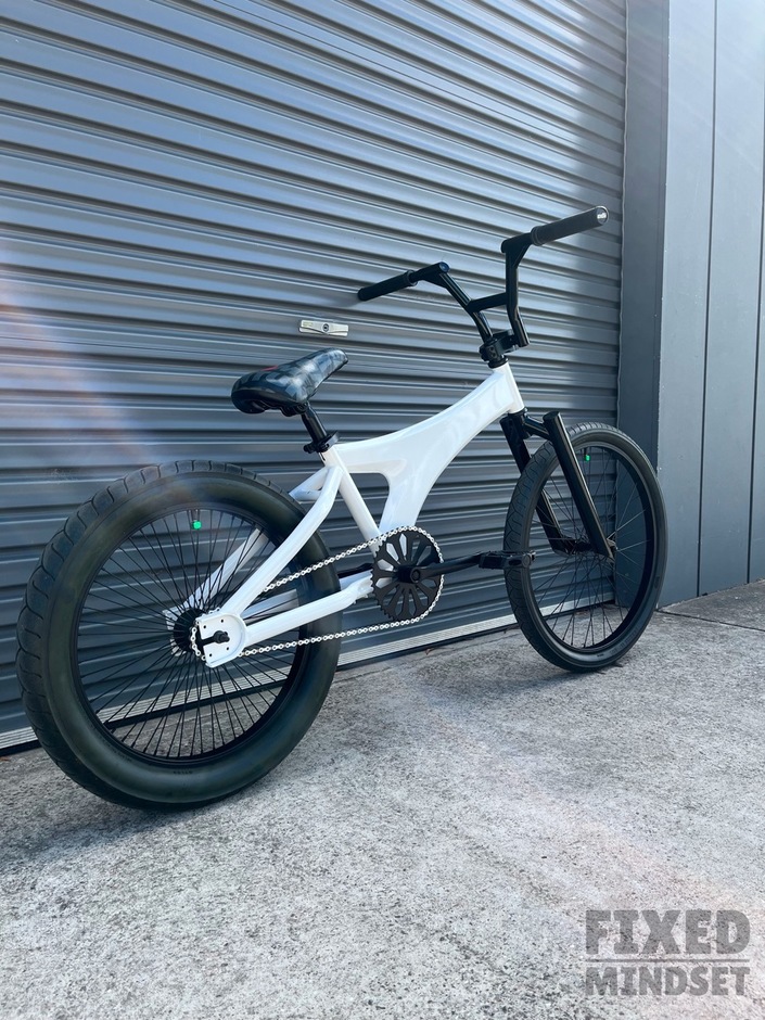 How's this for rad. An Australia-only late naughties steelie designed specifically for one thing only: pulling wheelies. These even came with a bloo_y wheelie bar! Even the stock ones are nuts but this 1-of-1 custom finish one is something else again. Not my build but I could not pass it up – just look at it. If anyone knows the original builder please hook us up. Yes coaster brakes can enjoy #fixedmindset too