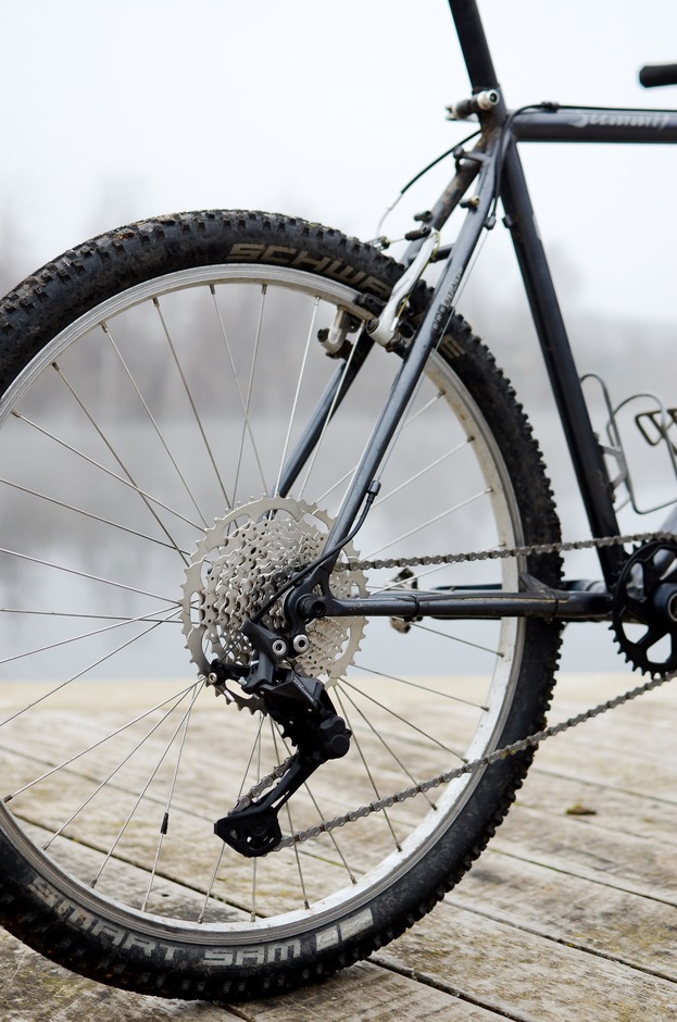 shimano xt 737 hub / unbranded alloy rims / schwalbe smart sam 26 x2.1
