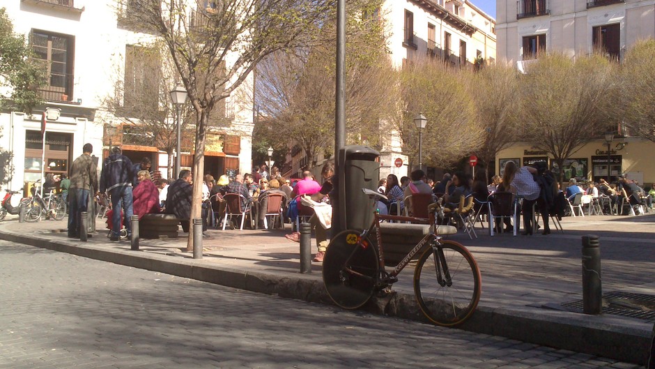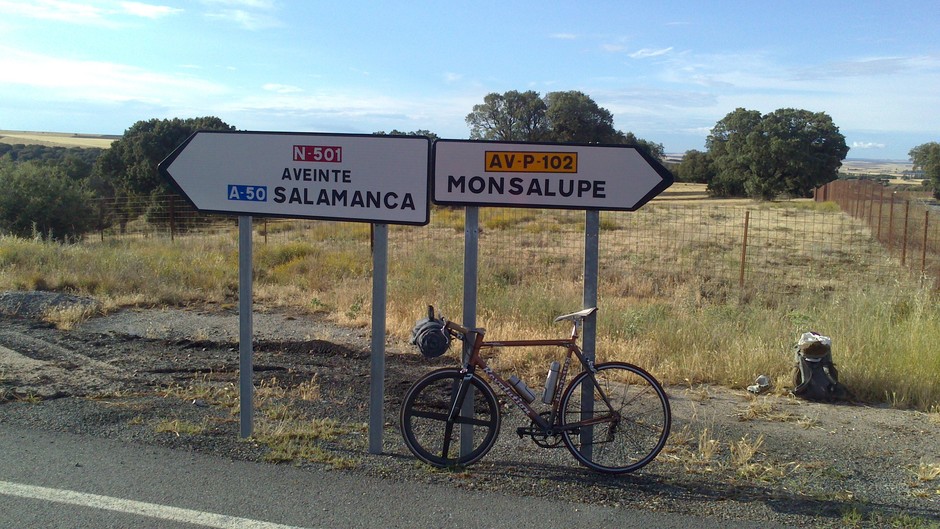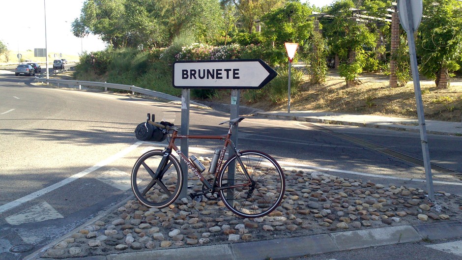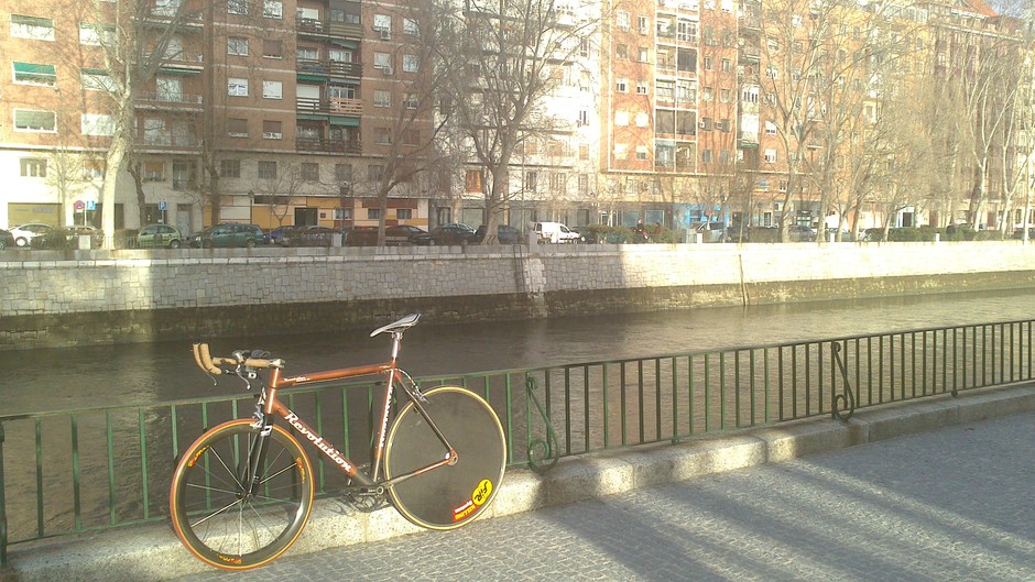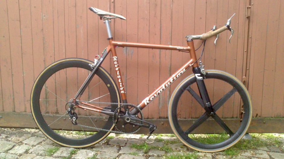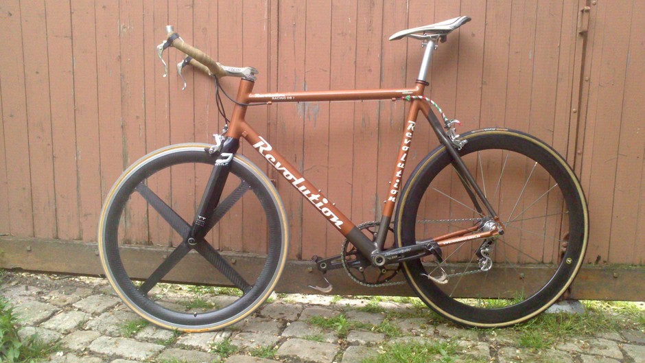 A repainted Checker Pig frame I picked up ages ago as bike without wheels. I never liked the frame until over the years I changed every piece of the bike but the frame. I would not consider it a serious bike. Yet it was my mile-cruncher. Nowadays it only collects dust. But thanks to all the memories I never took it apart, what would actually be reasonably.