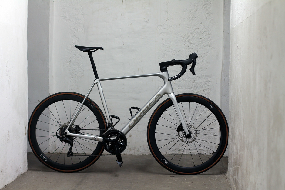 Orbea Orca 2024 (M35), custom. Frame and Fork in "Metallic Spark Silver". Detail in "Calca Titan" and Logo in "Titanium".