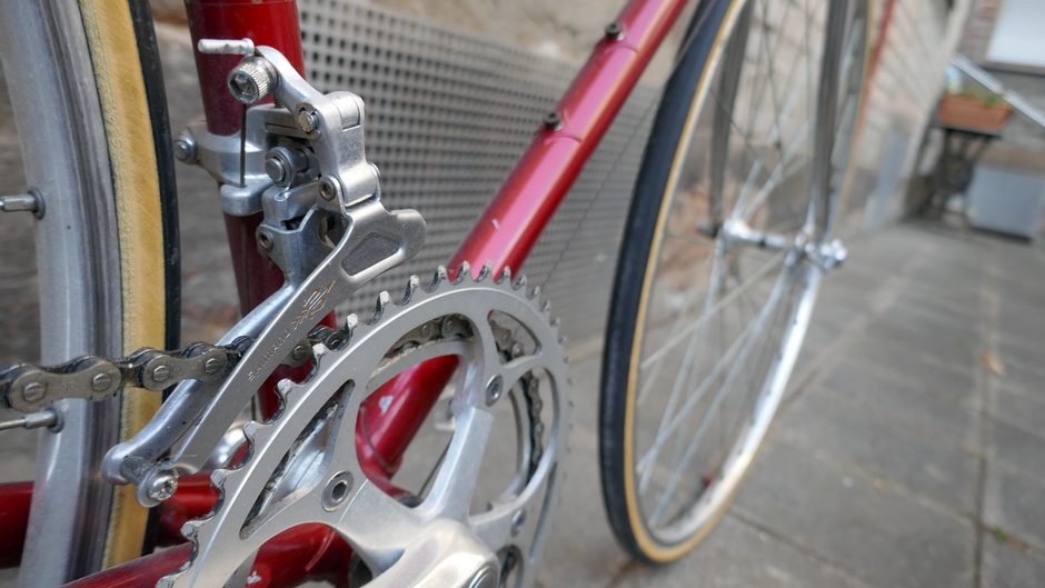 my first Road Bike.. in Cromovelato red, handlebar changed -> "Downhill" - my "Various Gear" City Bike