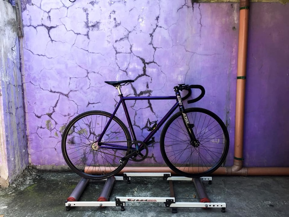 A purple track bike used for shredding mountains and rushing the streets of Manila.