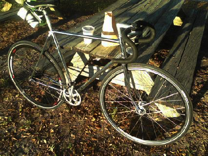 Loved loved loved this bike. Truly an eye catcher. This was my first real build, and I learned a LOT. Realized it was way too small for me, and traded it in. It's up on the wall in 8th Ave Bike and Coffee House. Go on and get on in there and get 'er!