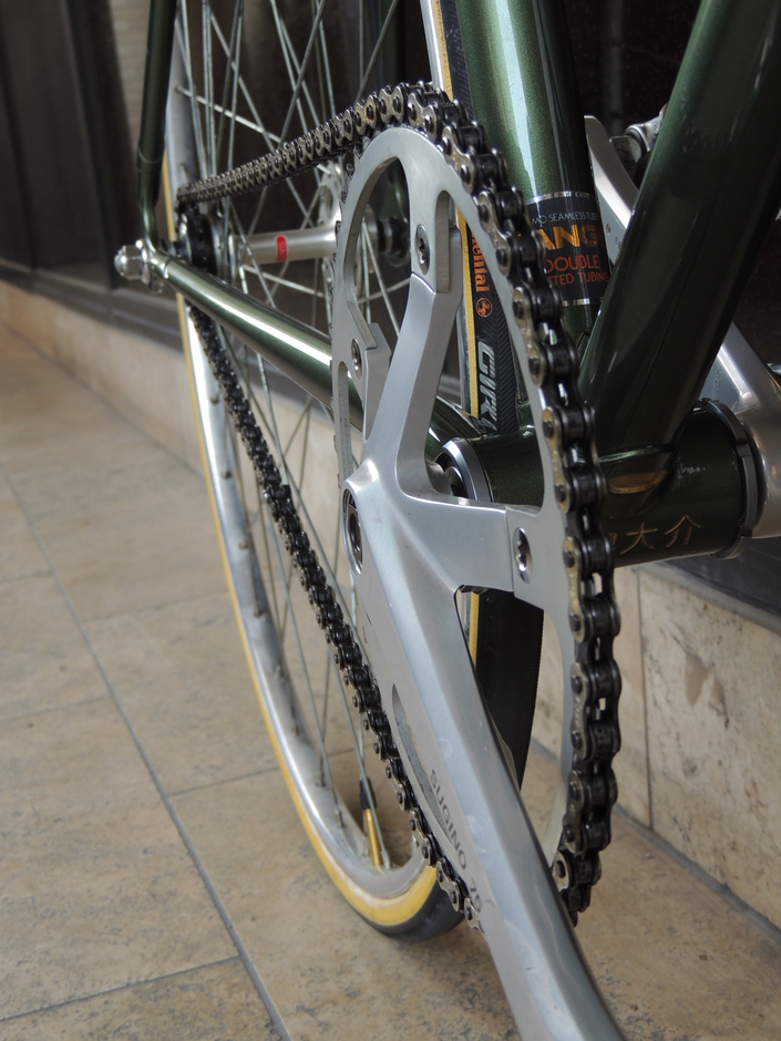 SuntourNJS or EAI 15t cog, Ofmega 52t chainring, Izumi Super Toughness chain