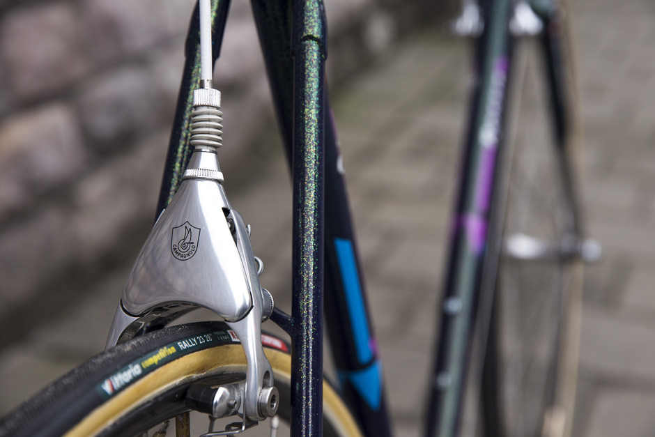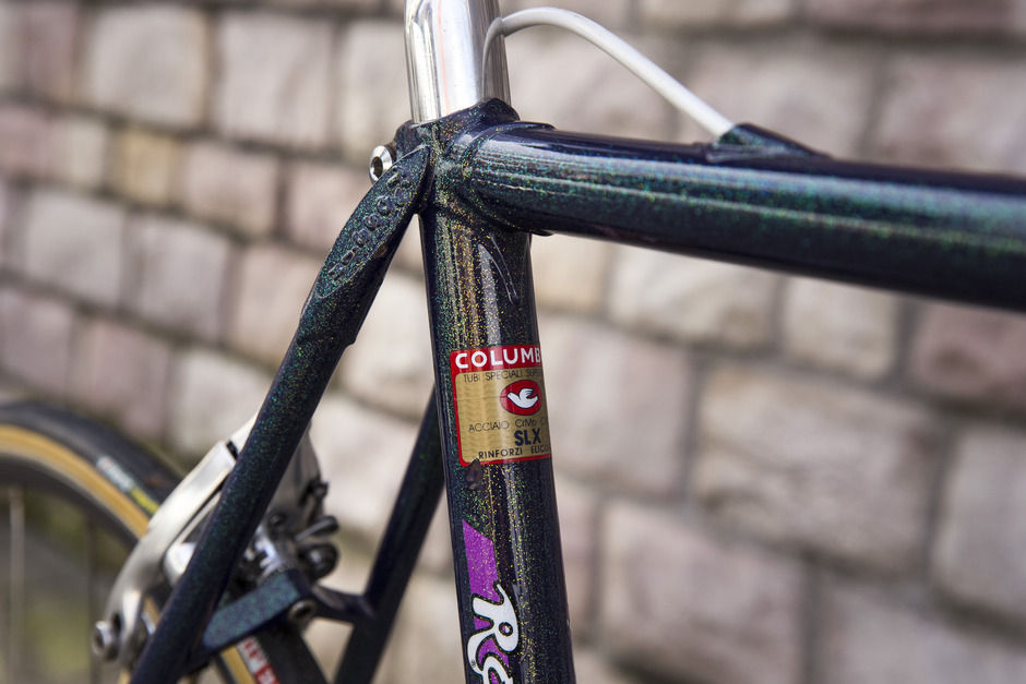 Late 80's Rossin Strada Professional, still looking if the bike was owned by a teamrider (SB 84 stamped on the rear dropout) I know the chain is a tad short and has two missing links, but this is temporarily.