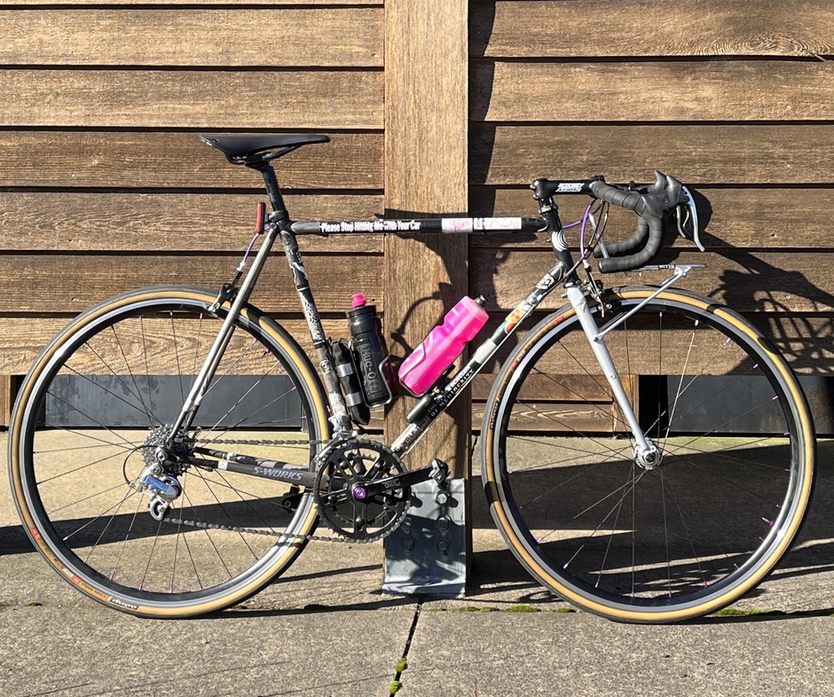 Possibly a 1993 Allez but not 100% sure. Early nineties steel Specialized road bike.