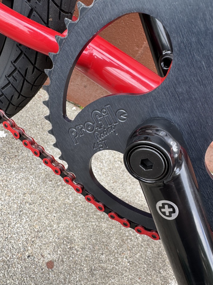 Profile Racing 45 tooth Ripsaw sprocket/ Origin 8 Hornet 108 16 tooth freewheel/ KMC chain