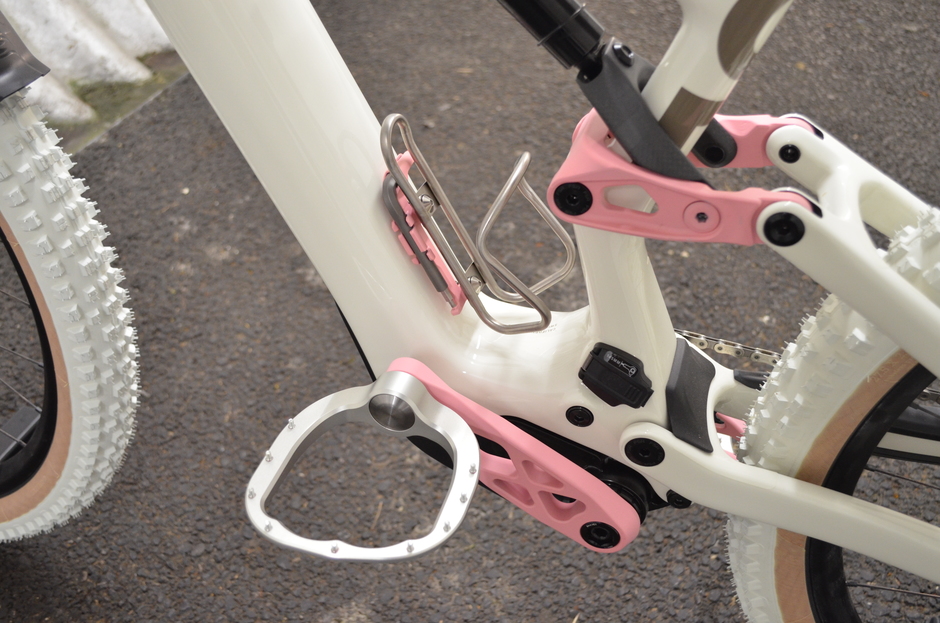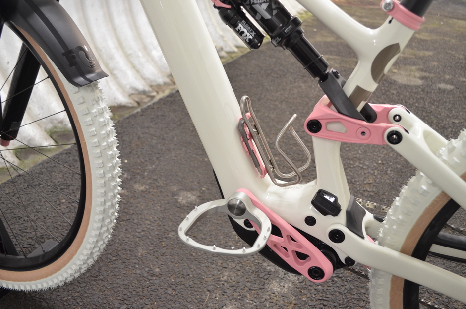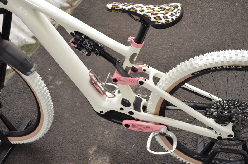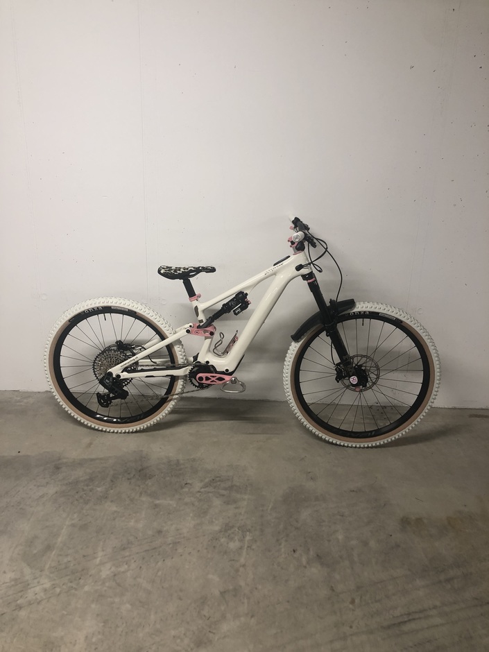 I bought my girlfriend a yellow Levo SL e-bike with purple parts as a birthday present. Only one month later a car hit us from behind and broke both bikes off the trailer. My steel bike could be fine but riding a carbon frame with battery after a crash is a risc not worth taking. So this is the new project: According to her the purple doesn't match with white so we thought about pink champagne first but we decided to go for classic bubblegum lite pink (bazooka pink) cerakote.