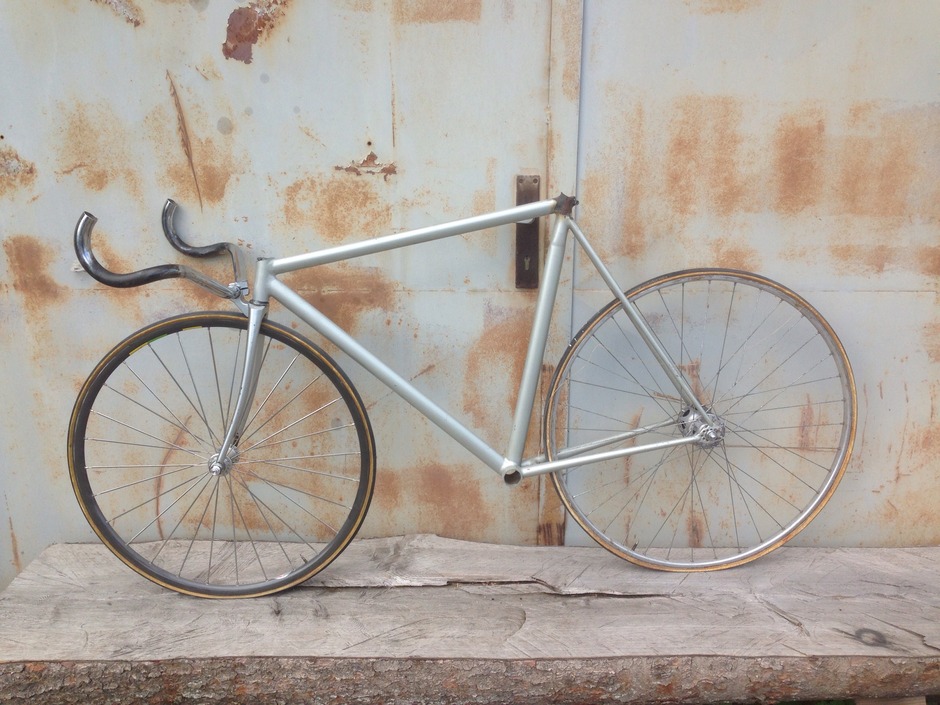 textima rim with handmade blade spokes / campa pista 28h / conti holzbahn
