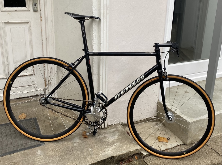 Bought the Frameset used and fell in love. Added breakes, cause #dadlife.