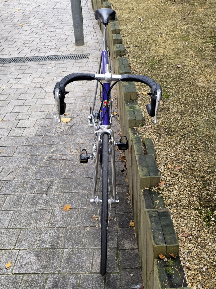 Crazy rear derailleur shifter cable thst goes under and then thro the driveside chainstay.