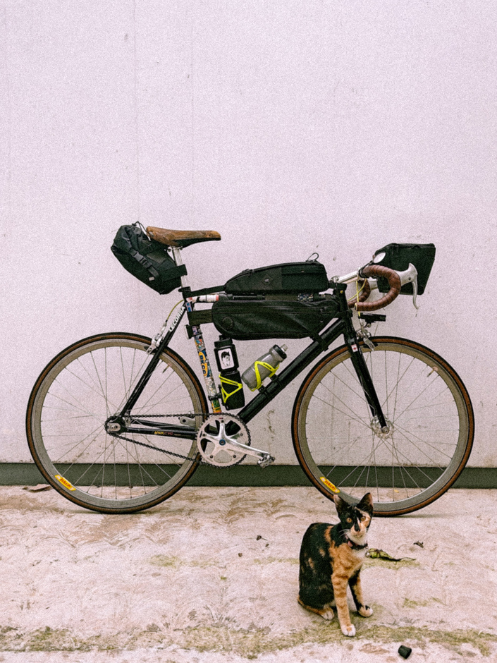 Riverside Handlbar Bag, Fairweather Frame Bag x-pac, Topeak Tetrarack R2 Rear Rack