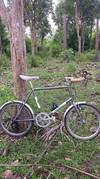 Paid $70 for this bike, cut seat stays, cut spokes, missing pedals and some brake parts, found this on a Japan Surplus Bikeshop in the Philippines. Brought a magnet to check if it is steel and not alloy beacuse local frame builder works only with steel. Magnet wont slip and got attached and so did the bike when I walked out of the shop. Bike is now on our local frame builder to replace two seatstays. Update: Master Ave charge me 1000 pesos or $50 for fixing the frame - total cost for the frame and repair $120.