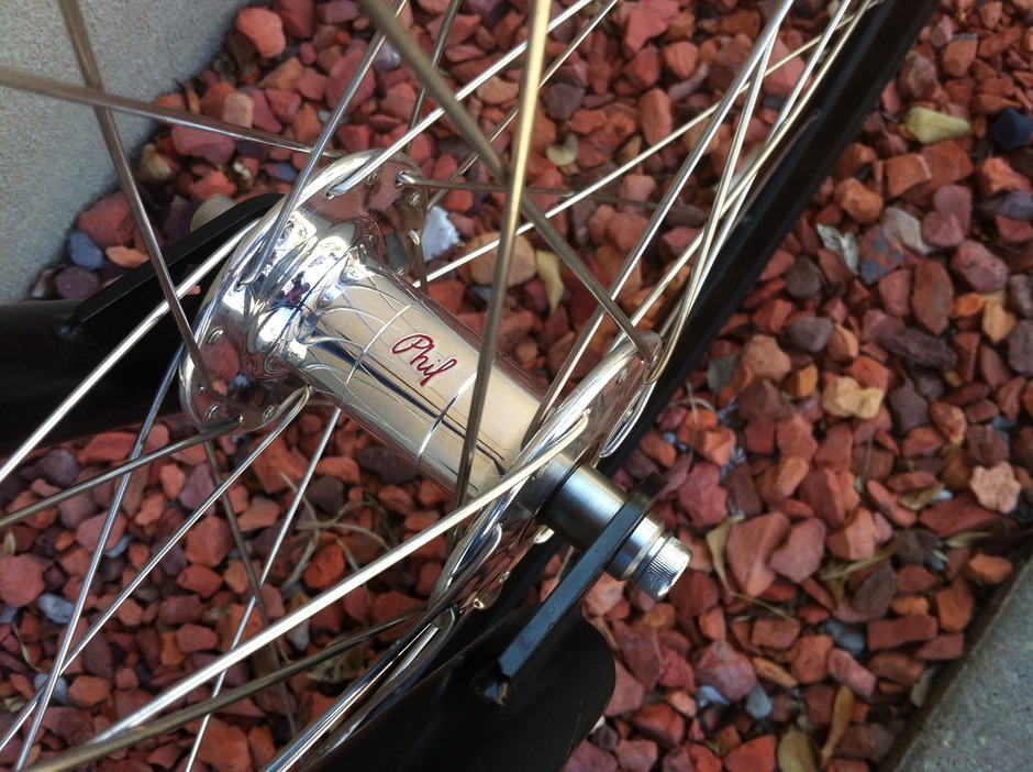 Phil Wood track laced to Velocity Chukker. Vittoria Raddoneur 35c tire.