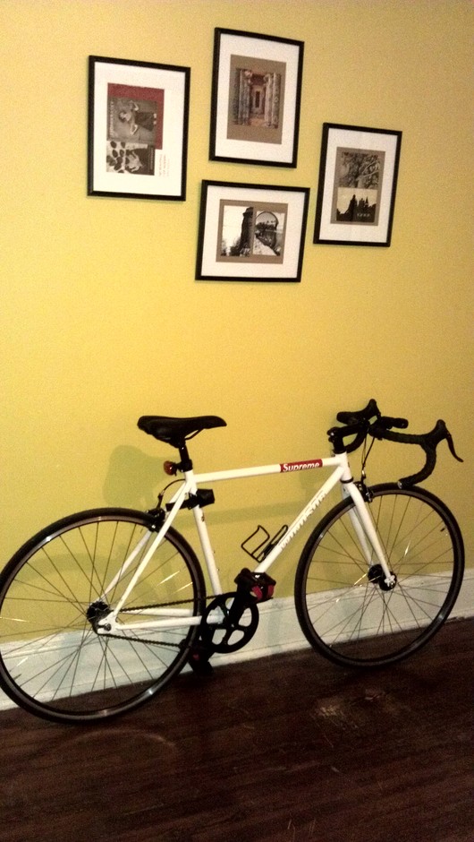 150 Lumen no-name light, Cateye rear light, Supreme original vinyl sticker, Avenir bottle cage