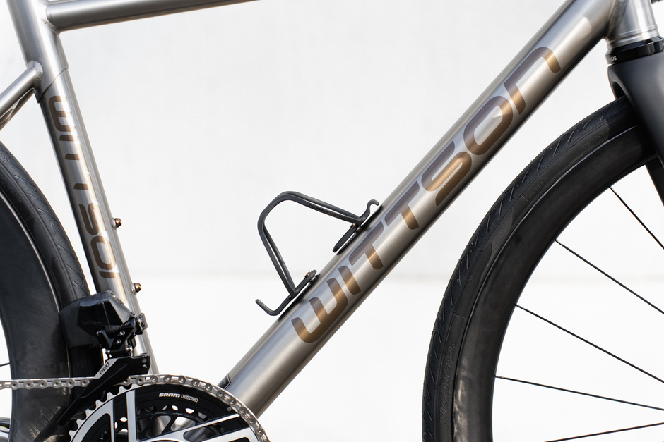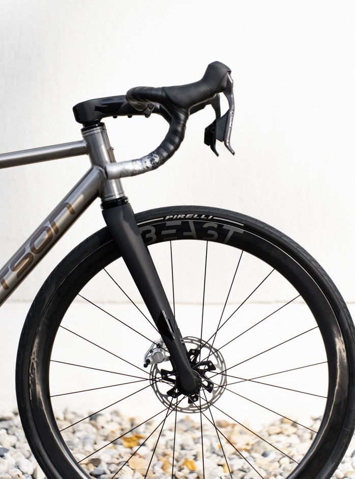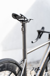 - modern road race disc geometry - fully integrated COLUMBUS Trittico cockpit - oversized externally and internally butted headtube - oversized double butted downtube - integrated seatpost with a support on toptube/seatstays cross section - shallow hydroformed seatstays - Illuminati brake bridge - hydroformed chainstays - fully integrated brake cable routing - T47 bottom bracket - flat disc mount - made in USA PARAGON dropouts compatible with both DT Swiss 142 x 12mm and SHIMANO 142 x 12mm hangers - DT Swiss 142 x 12mm thru axle removable alu hanger - hand brushed finish - custom anodizing - ti headbadge