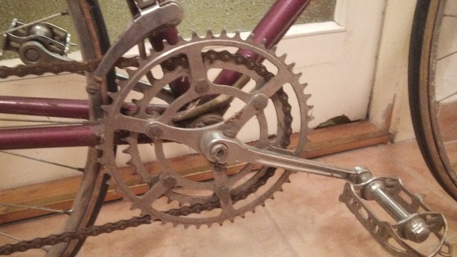 Almost fully restored soviet bike, with all original component, I saved it from a barn for 7$. It was the semi-pro road bike version of XB3 Sport/Rekord track bike, and it has nice geometry with ~98cm wheelbase. I had to change the stem and the seatpost, because those were too small for me. the frame is around 2200g, "pretty light", and rides comfortable. Everything works fine, since the photos it got a headbadge, and quick release axle also on the back.