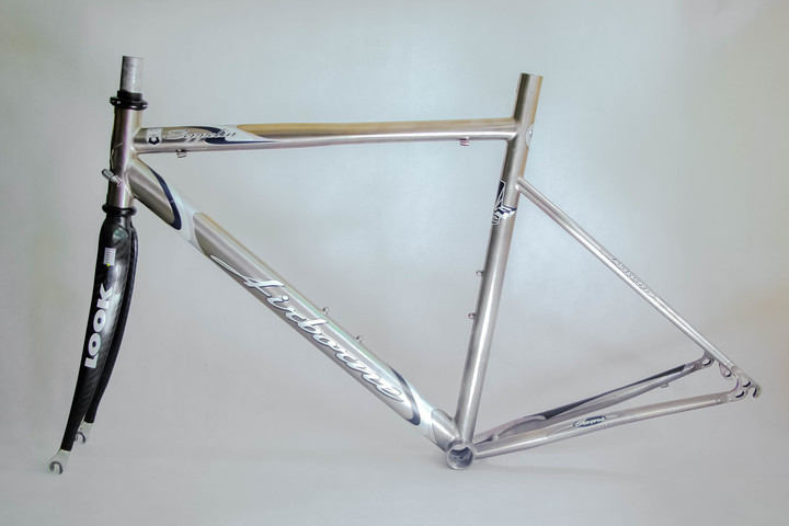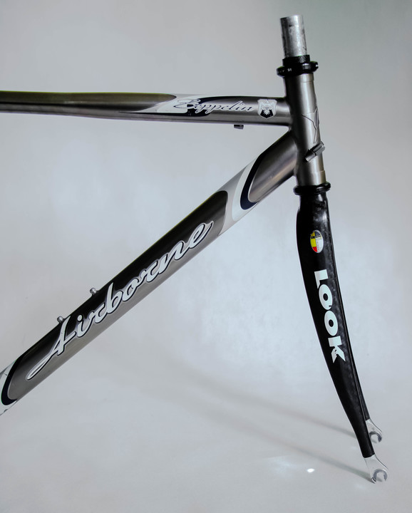 Up for sale Airborne Zeppelin 3AL/2.5V titanium frame, known for its excellent strength-to-weight ratio. With it's smooth, light and quite stiff design made it a really fast ride. Airborne now defunct split into two different brands Flyte (now defunct as well) for North America and Van Nicholas for Europe which is making well known titanium bikes to this day.