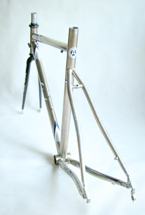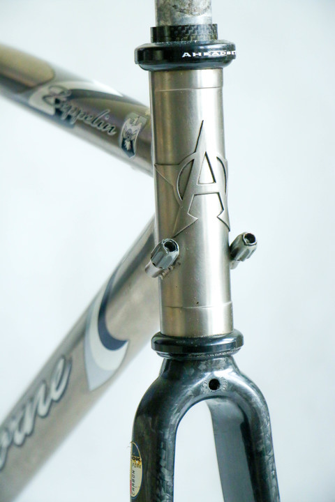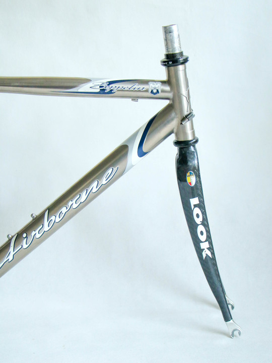 Up for sale Airborne Zeppelin 3AL/2.5V titanium frame, known for its excellent strength-to-weight ratio. With it's smooth, light and quite stiff design made it a really fast ride. Airborne now defunct split into two different brands Flyte (now defunct as well) for North America and Van Nicholas for Europe which is making well known titanium bikes to this day.