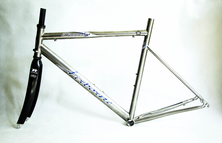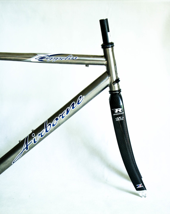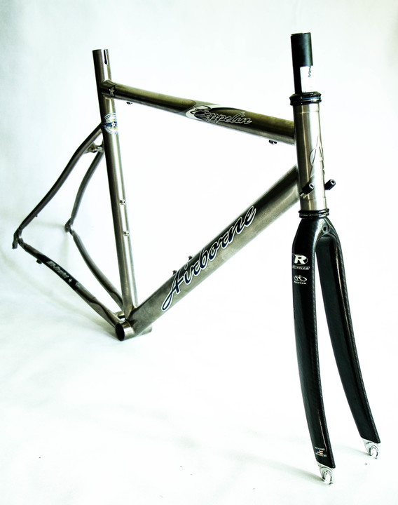 Up for sale Airborne Zeppelin 3AL/2.5V titanium frame, known for its excellent strength-to-weight ratio. With it's smooth, light and quite stiff design made it a really fast ride. Airborne now defunct split into two different brands Flyte (now defunct as well) for North America and Van Nicholas for Europe which is making well known titanium bikes to this day.