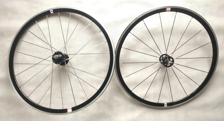 For sale strong and very responsive American Classic aero 420 track pista single speed fixed gear 700c 28" 622 wheelset with aero shaped spokes. Front wheel 18h. Rear wheel 24h. Spins smoothly and are true. 300 euros + shipping