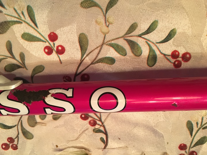 I'm selling my Basso Astra frameset. Like the title implies, it's a bit of a mystery. It appears to be a custom built frameset for a racer, dating from the early 90's. Though the paintjob matches that of the "Astra" model, there's no Columbus tubeset sticker, and the fork is a custom-sourced Sakae fork, which feels considerably lighter than your typical Columbus fork. The frameset is either a Columbus Nivacrom tubeset (like EL-OS), which the Astra models were built of, or at least SLX. The frameset is super stiff and surprisingly light for its size. The main issue is that there is quite a bit of rust on the top-tube, which is under the paint, which will need to be addressed. I was planning on having this frame sandblasted and building it up with a threadless fork, but I've decided to go in other directions. This is one fast fucking steed that needs a little bit of love! Price is firm.