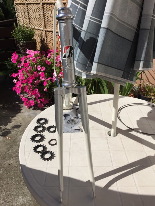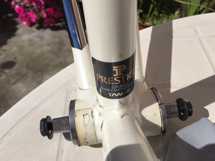 Bridgestone Anchor steel NJS track frameset, 55cc x 56ct, Tange Prestige tubes(!), st 27,2 , rear 120. Very good condition, visual as seen, very minor dent on the right side of the top tube, few scratches on the head tube due to storage, not road accident. Comes with Hatta Swan SD NJS hs, S75 NJS bb(optional), Sugino sp clamp bolt.