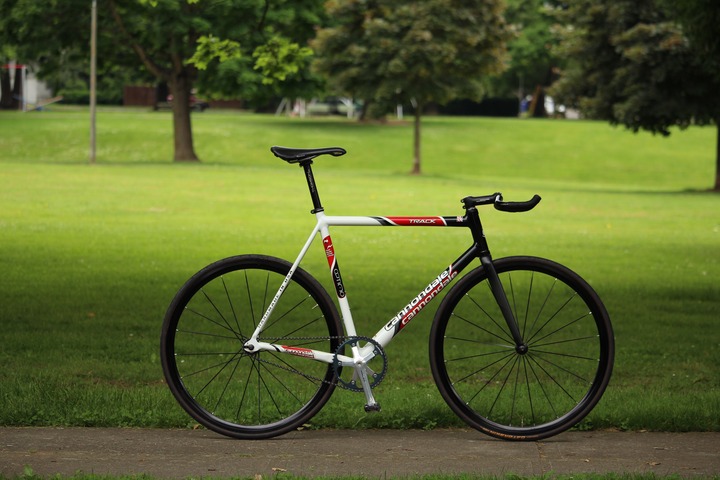 56cm Cannondale Track 'Optima' in the limited-run Major Taylor edition. Frame and Cannondale Slice carbon fork are in absolutely flawless condition. Not a single scratch or paint chip. Obviously no dents, dings, cracks.