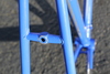 Nicely crafted hand built Colnago frame. Appears to be circa early 90's. No Columbus decals remain to denote exactly which tube model this is, but certainly of Columbus tubing. The bottom bracket shell is stamped as a 58 (ctt), actual TT & ST ctc measurements are 56.5cm square. Blue paint is darker in person than in photos, it is a proper Buckler navy blue.
