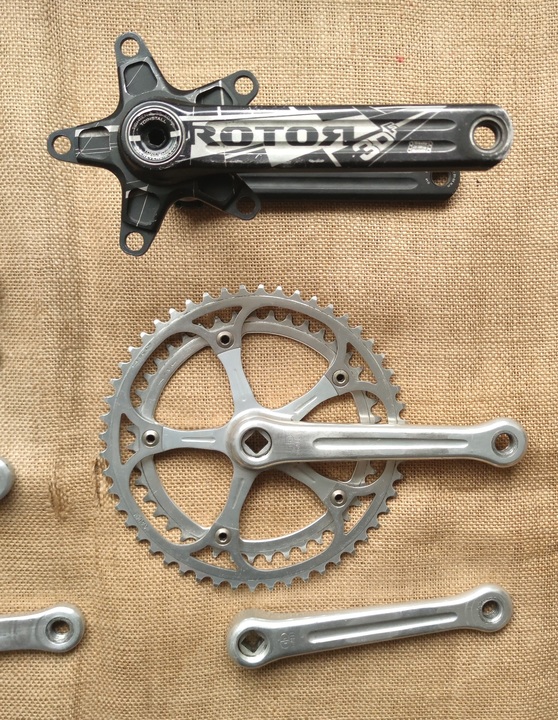 Rotor 3DF compact crankset for double chainring setup. 110BCD fits compact Campagnolo, Shimano and other brand chainrings. 172.5mm crankarm length. 9/16x20 pedal threads. 70 euros