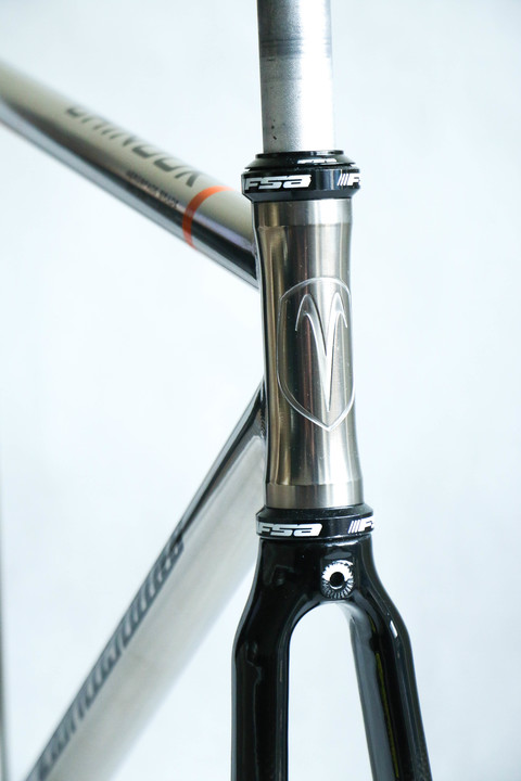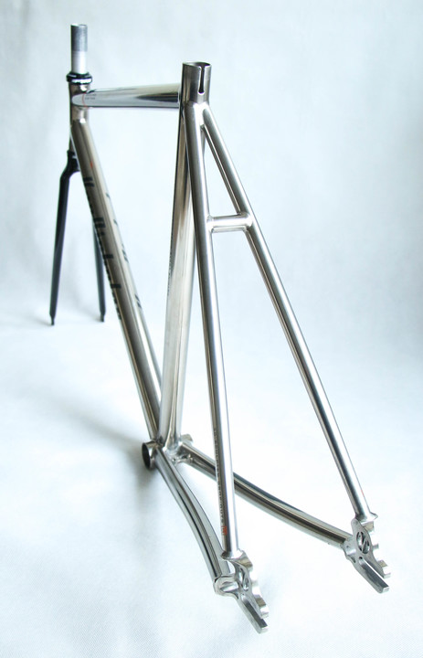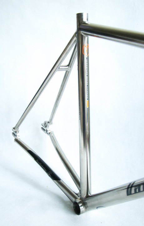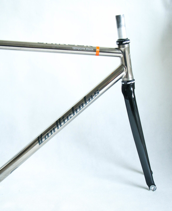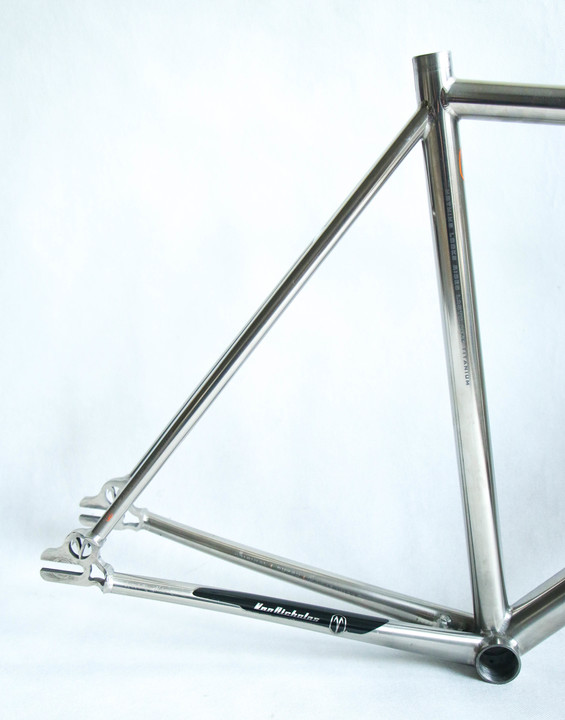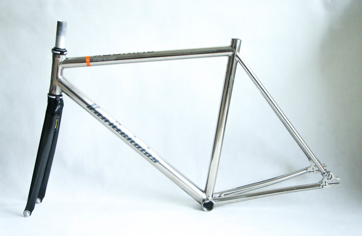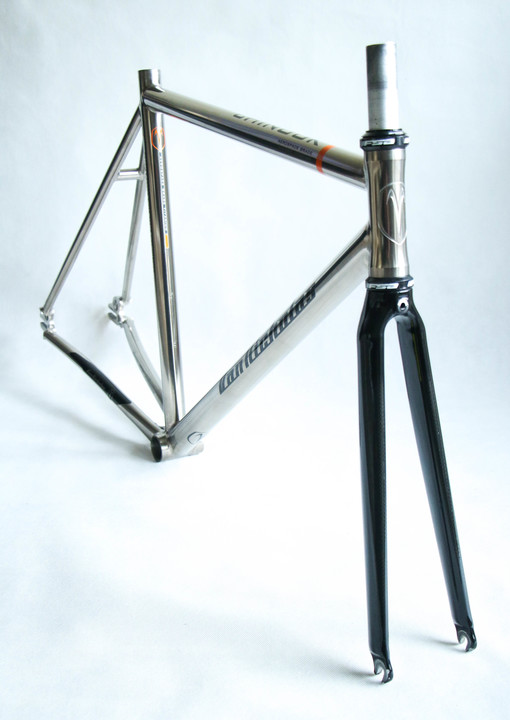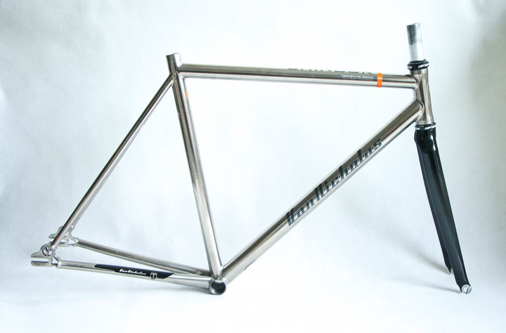 Custom order Van Nicholas Chinook track single speed fixed gear titanium frameset. 3AL/2.5V seamless optiformed titanium. Comes with 1 1/8" carbon fork with front brake mounting option. Frame is spotless without any dents, cracks or any other structural damage. Comes with 1 1/8" carbon fork and FSA sealed bearings headset. For 28" 700c wheels.