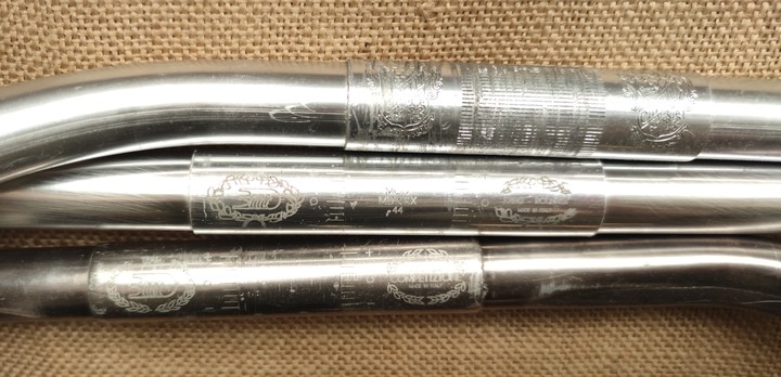 Cinelli 66 Campione Del mondo Double Cinelli logo silver dropbars handlebars. 26.4mm clamp. 40cm center to center. 30 euros