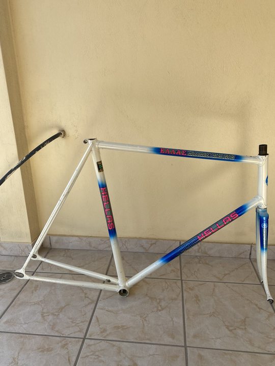 For sale there is an Hellas Track frame and forks in 58 sizec-c.