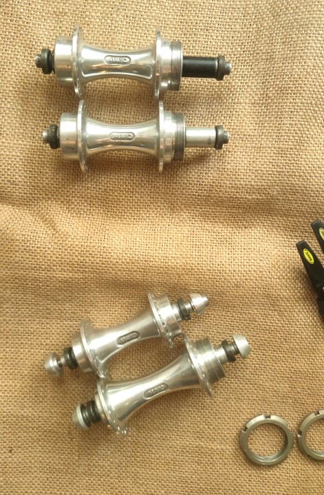 Mavic 520 Piste Pista track fixed gear hubset. Front and rear. 36. Spins smoothly, no play. 100/120mm. 350 euros