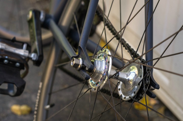 Hard anodized H+Son Archetype / Suzue Pro Max SB / Conti 4000 S II (? I think it still has Lithion) / Bladed spokes