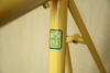 Tom Kellogg from Spectrum Cycles confirmed that this frame is a 1990 Merlin titanium frame, and it originally had the pressed-in bottom bracket, but the bottom bracket shell has been professionally replaced with a standard English-threaded BB shell, so it now takes a standard English bottom bracket. Fork is a full carbon Look 1" threadless fork that's been painted to match the frame. Frame and fork are in excellent shape, with no dings, dents, cracks, or other damage. There are a few paint scratches and some cable rub, but nothing out of the ordinary for a bike that gets ridden.