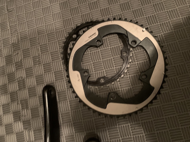 Sram Red GXP Quarq 130bcd 172.5 hidden bolt with 53/39 rings. Rings are in pretty good condition. Battery also dead. (ongoing theme for me). I planned on keeping this one, so price is a little firm-ish.