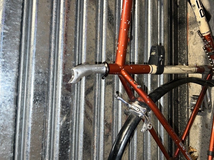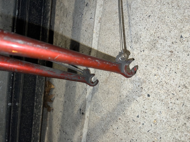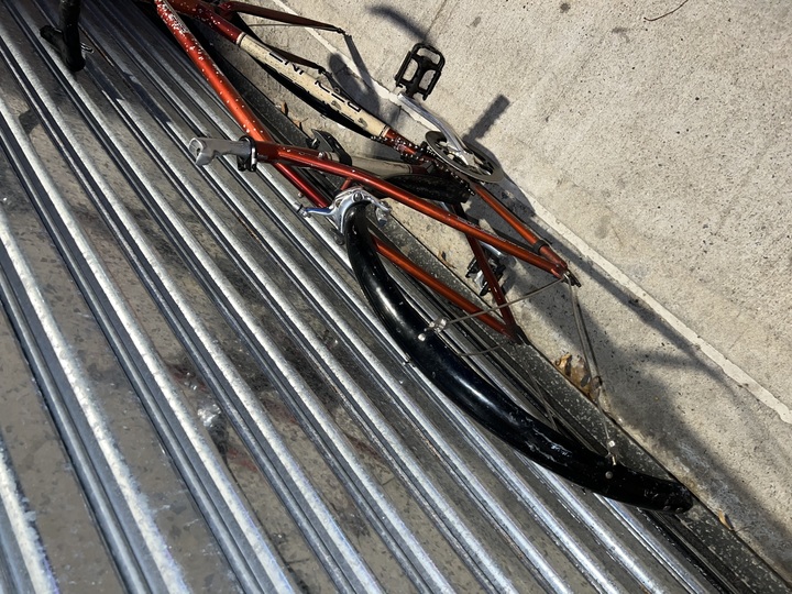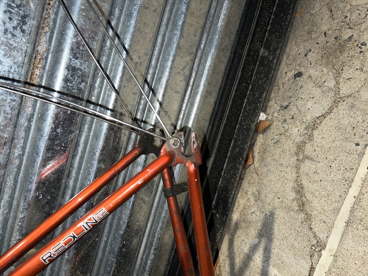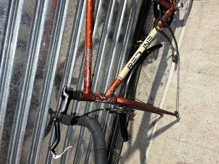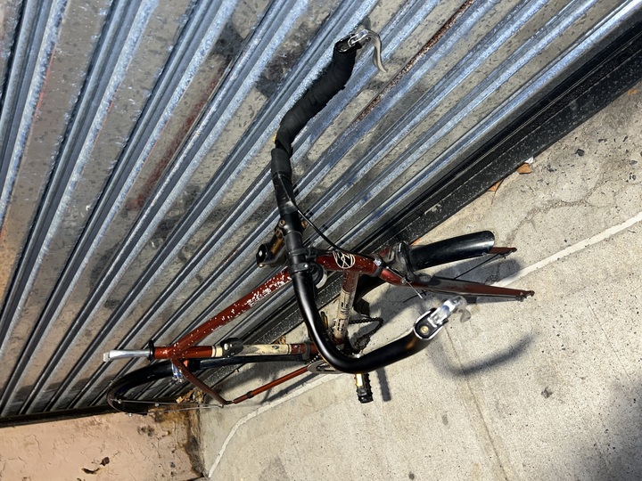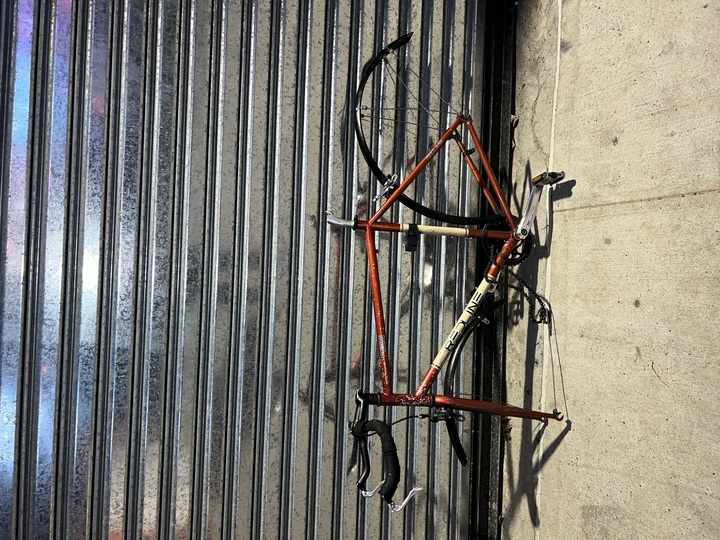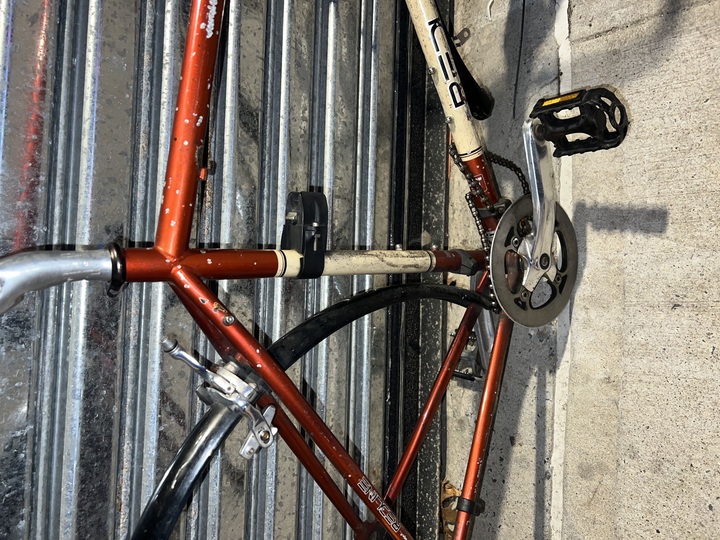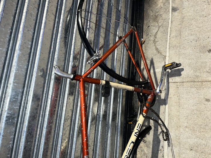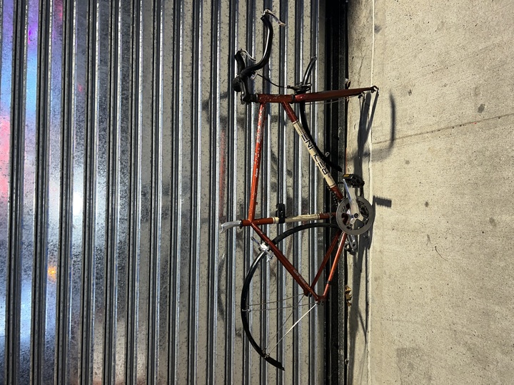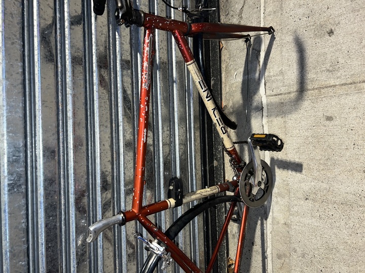 Fair condition. Steel 21 inch frame. Has scratches on paint. Horizontal dropouts. 120 mm rear spacing. Comes with fenders, brakes & other pictured components.