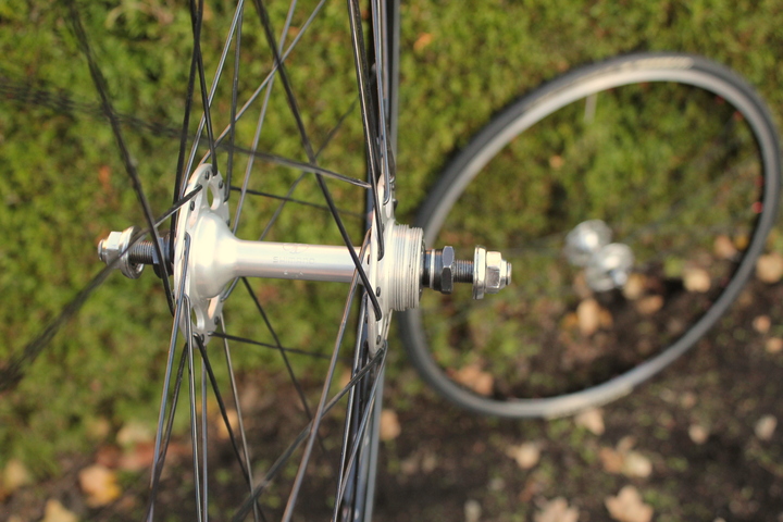 Freshly rebuilt. Maybe 100 miles on the pair since re-lacing to brand new Open Pro hoops. Hubs were professionally overhauled then as well. Very slight brake wear on front rim. Rear hub is NJS stamped, front hub is not.