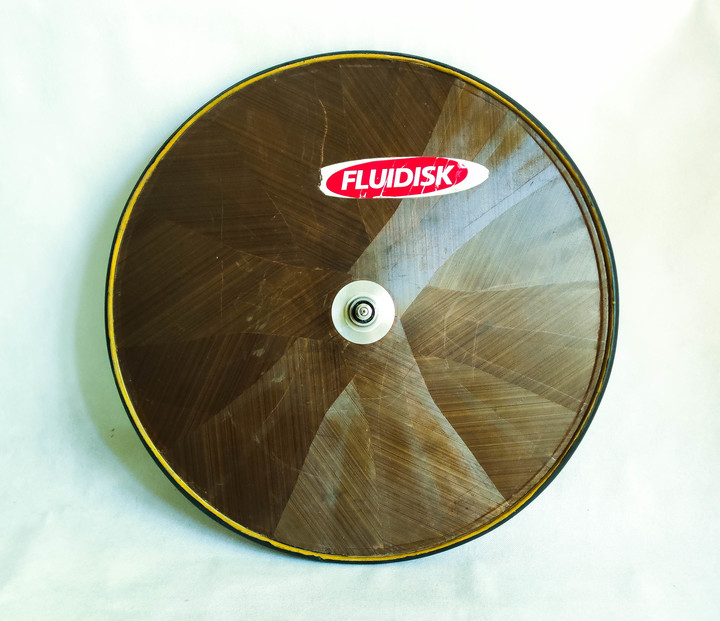 For sale Soviet USSR Fluidisk 666 POCT Kevlar rear track disc wheel. 700C 28". Wheel is in ok condition and spins smoothly. Spacing is around 120mm. Both hub dust caps are missing. Standard track cog threads. Comes with original soviet made tubular 22mm tire. 450 euros + shipping
