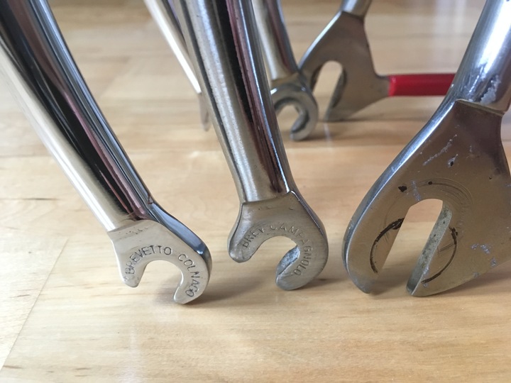 • Bahngabel ungebohrt / track fork undrilled (Gewicht ca. 731g, Schaft ca. 210mm, Gewinde ca. 45mm, Einbaubreite 95mm, Campagnolo Ausfallenden / dropouts)