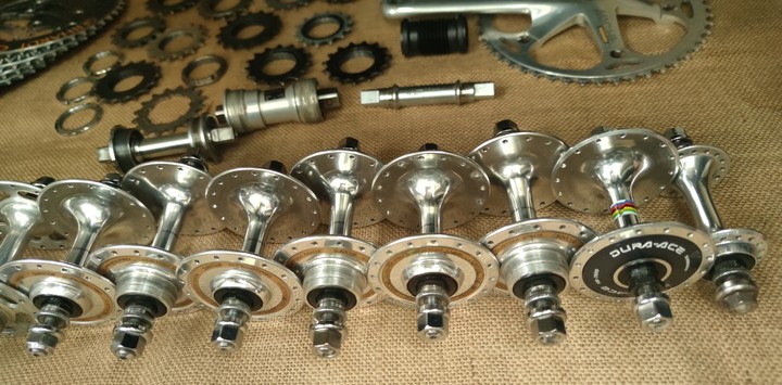 Campagnolo Record Pista high flange hub set rear and front. 32h. Spins smoothly. No play. Threads are 35 x 24 F and has no damage. 100mm and 120mm - 250 euros