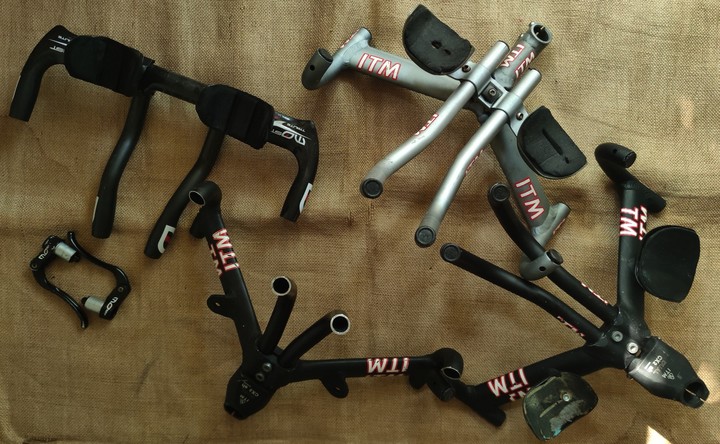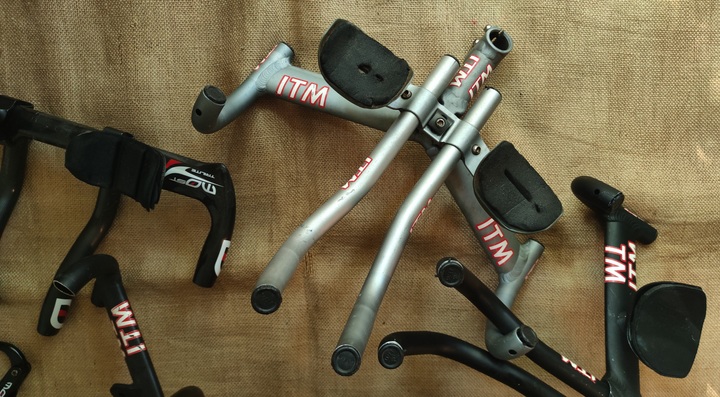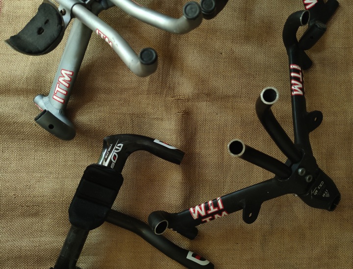 ITM Dual Aero tt crono handlebars with integrated 1" (25.4mm) ahead stem. 36.5cm center to center. With holes for internal cable routing. 170 euros